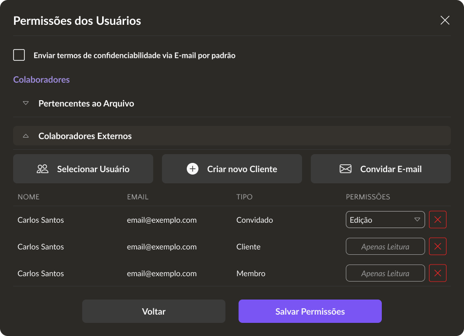 <figure><img src="https://3094770693-files.gitbook.io/~/files/v0/b/gitbook-x-prod.appspot.com/o/spaces%2FUDAW8OhFeBrf24AjPbyD%2Fuploads%2F7h6LMiH4yev6tHN1YbIl%2FPermiss%C3%B5es%20dos%20Usu%C3%A1rios-1.png?alt=media&#x26;token=32118962-081c-4f57-ac21-e1bc2f593f43" alt=""><figcaption></figcaption></figure>